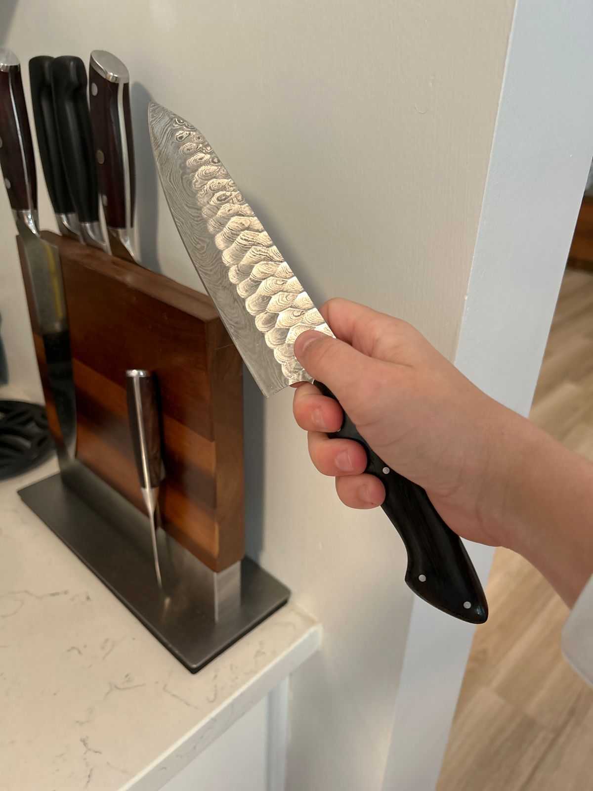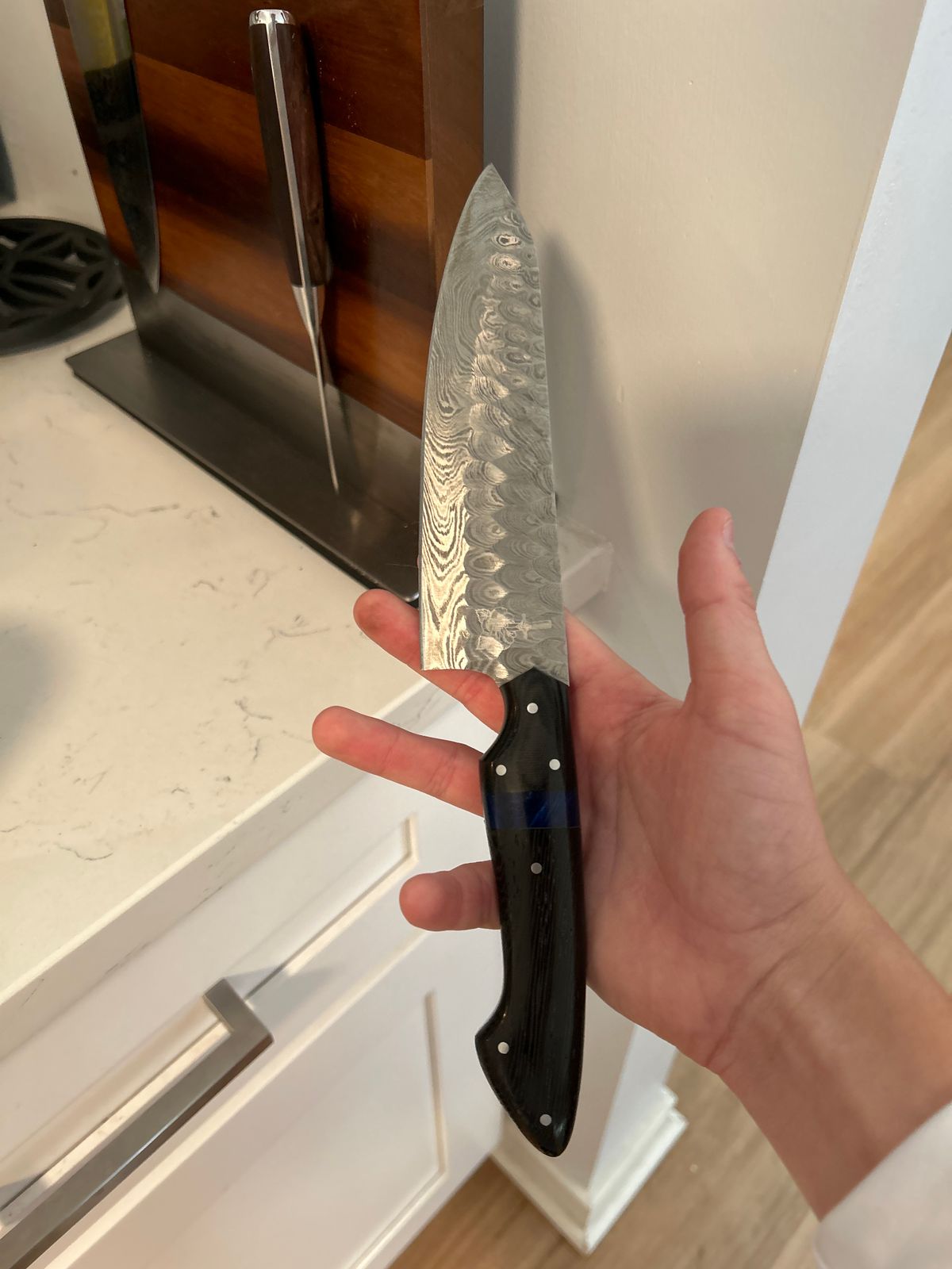 This knife was bought as part of a set. We have been thoroughly impressed with the quality of this knife.