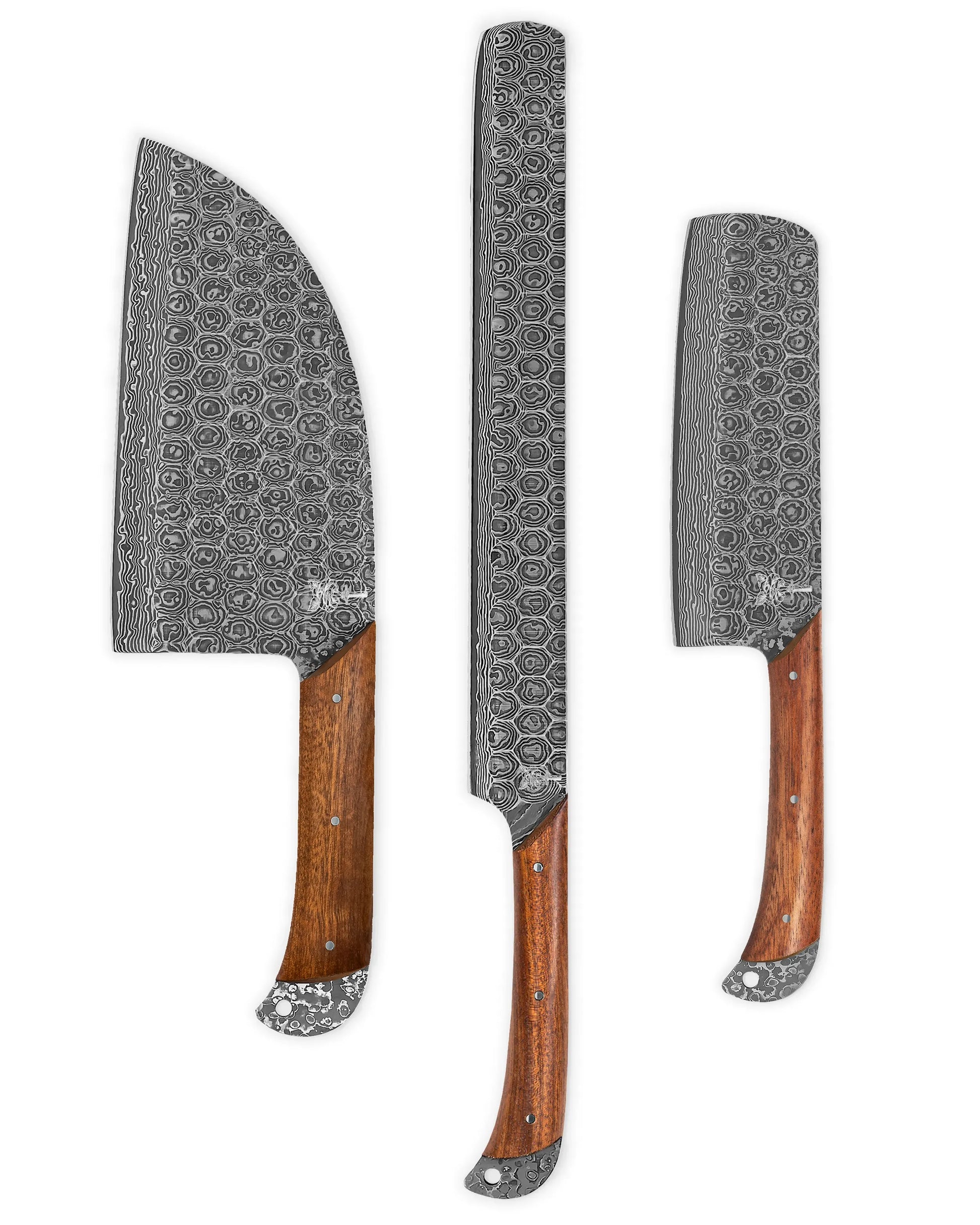 Everything you need to dominate the cutting board. The Lotus Butcher’s Bundle includes the Lotus BBQ Slicer, Serbian Chef Knife, and Cleaver, each designed for bold cuts and serious style. Perfect for anyone who likes their tools as sharp as their skills.